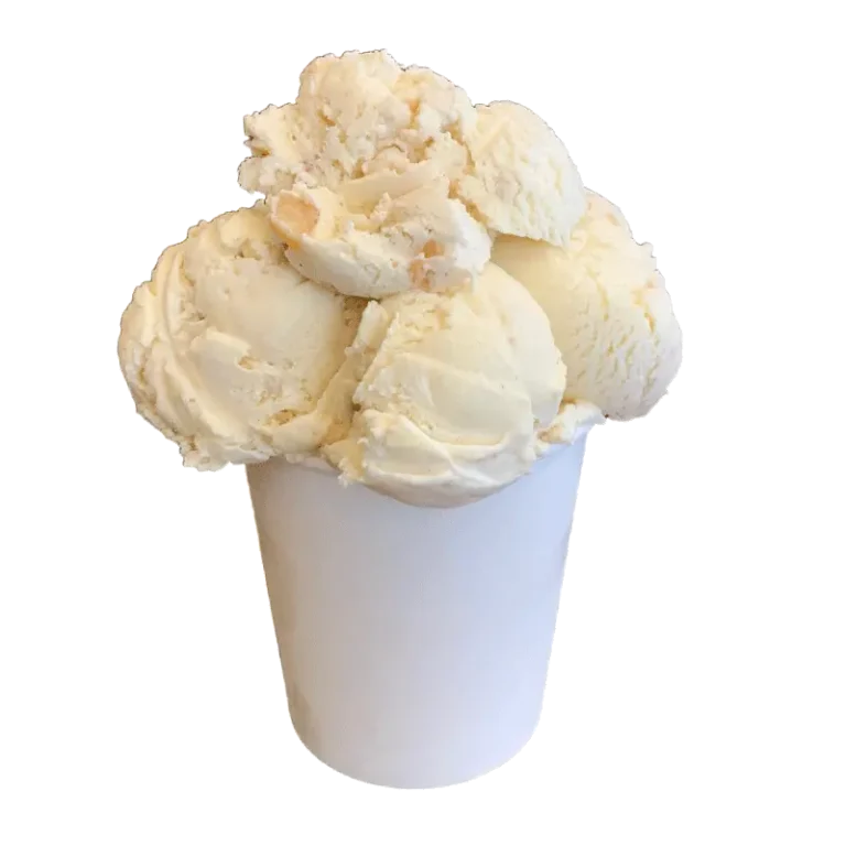 Ugandan vanilla ice cream with chunks of Heath toffee and chocolate flakes